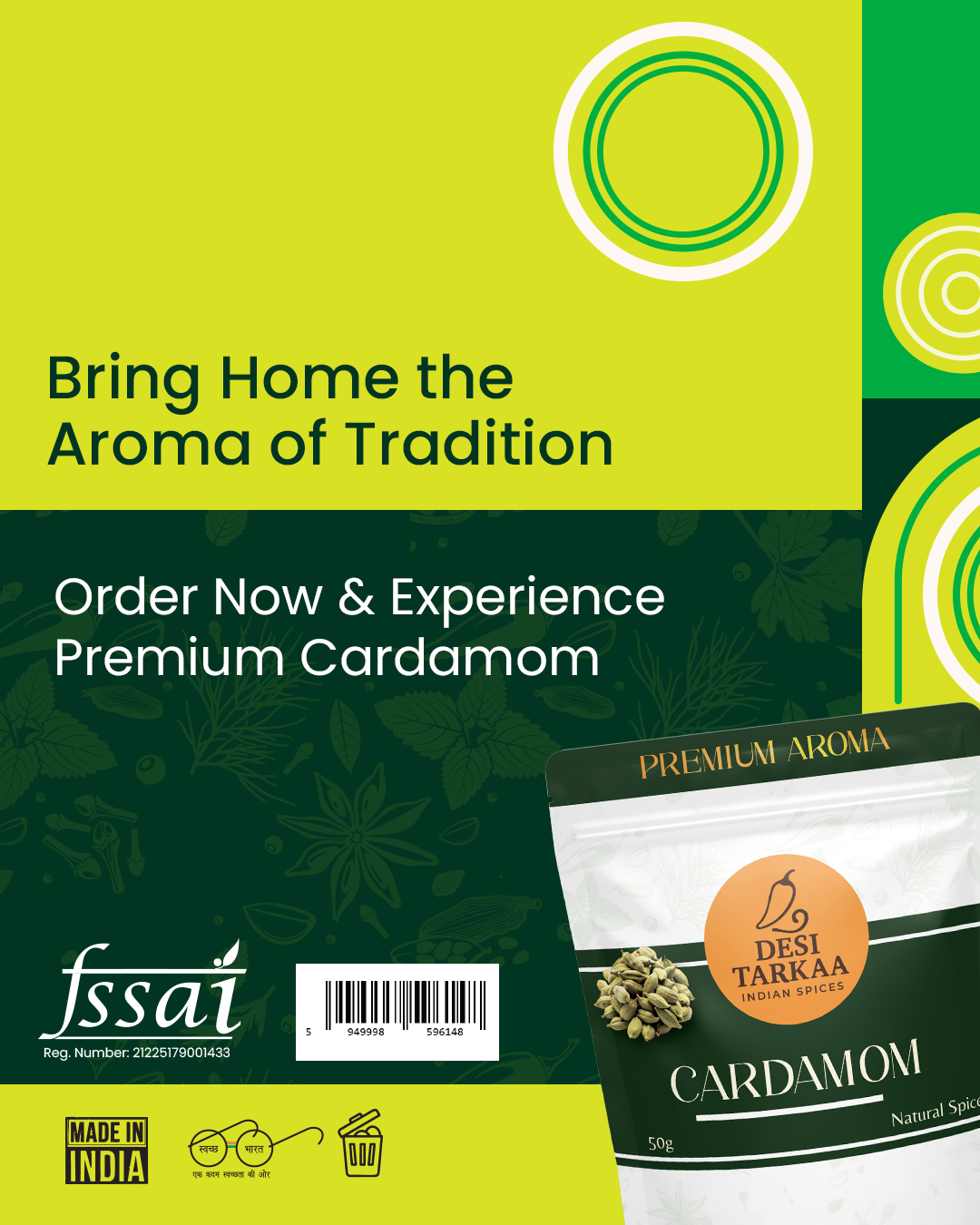 Elevate your kitchen with DESI TARKAA’s premium cardamom – the secret ingredient to irresistible taste and authentic Indian tradition.